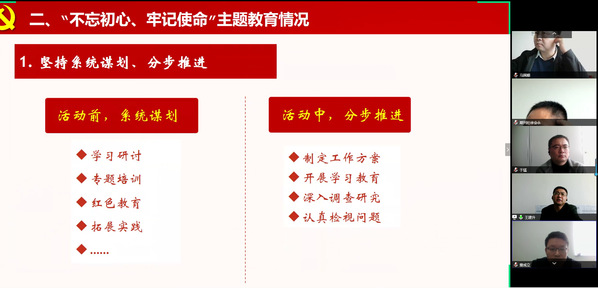 视频会议上,9名党支部书记进行了“现场”述职,其余22名党支部书记以书面形式进行述职。31名党支部书记紧紧围绕一年来开展“不忘初心、牢记使命”主题教育情况、党建工作取得的成绩、效果及特色工作情况;上年度查摆问题整改情况;本年度党建工作存在的主要问题及努力方向等方面进行了述职述责。