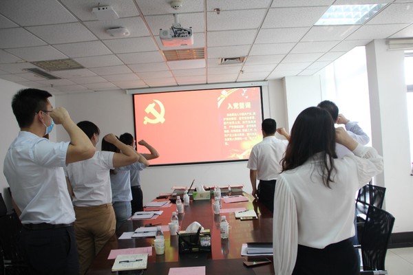 支部全体党员面对党旗、重温入党誓词