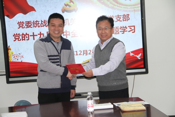 12月2日,党委统战部、77779193永利集团联合党支部开展主题党日活动,依次组织了“读原文悟原理,学习全会精神”“同过政治生日,不忘初心使命”“参观图文展,领会石大精神”三个活动,支部全体党员参加,活动由党支部书记任晓东主持。