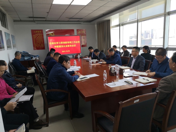 会议重点研学了党委书记王勇关于党风廉政建设方面讲话内容,并请纪委副书记杨卫生以集体谈话的形式,作《以案为鉴,树牢廉洁从业意识》主题讲座,基建处处长、支部书记王迅也对基建处今后廉政建设、廉洁从业教育工作进行详细安排、提出具体要求。会后,基建处与每一位员工签订了《基建处廉洁从业承诺书》,确保基本建设高效、优质、安全、廉洁运行。