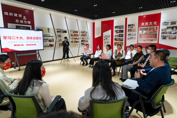 11月24日,为深入学习党的二十大精神,全面贯彻习近平总书记在报告中提出的“完善志愿服务制度和工作体系”的时代要求,我校校团委党支部和英语2003团支部于大学生活动中心团情团史教育基地开展了以“学习二十大,青年志愿行”为主题的党团共建活动。学校团委书记、校团委党支部书记季林海,外国语学院党委书记朱惠平、团委书记相欣余,校团委党支部成员、英语2003团支部成员,参加了本次活动。
