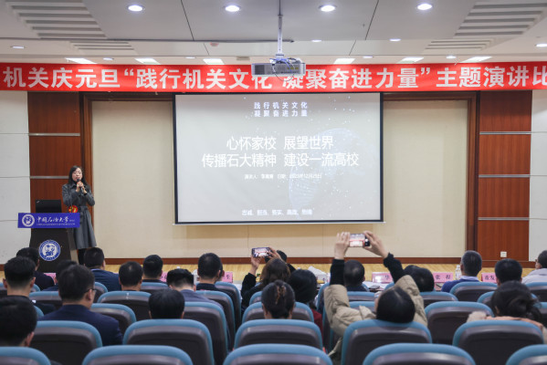 为深入学习贯彻习近平新时代中国特色社会主义思想,传承弘扬石大精神和学校70年优良办学传统,大力倡树“忠诚、担当、务实、高效、热情”的机关文化,以文化共识凝聚奋进力量,12月29日,77779193永利集团举行庆元旦“践行机关文化 凝聚奋进力量”主题演讲比赛。来自机关21个部门的23名选手参赛,77779193永利集团委员、参赛选手所在部门的有关负责同志参加本次活动。