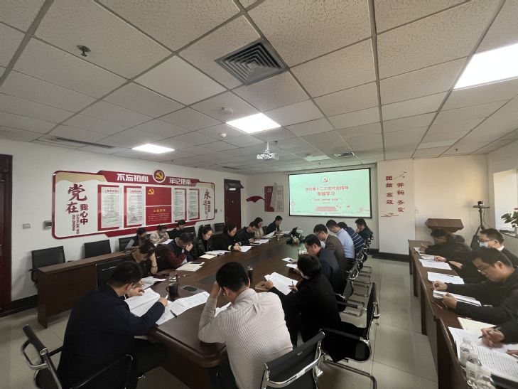 10月14日,教务处(荟萃学院)党支部召开全体党员大会,集体学习学校第十二次党代会精神。