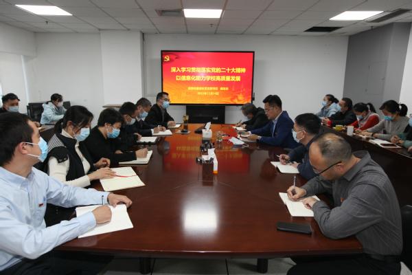 郝志杰以“深入学习贯彻落实党的二十大精神,以信息化助力学校高质量发展”为题,为支部全体党员上了一堂专题党课。他带领广大党员回顾了我们党过去五年的工作和新时代十年的伟大变革,从领悟党的二十大的重大意义、理解党的二十大的主题、学习“三个务必”等一系列的新观点等方面,深刻理解了党和国家事业发展的总纲和相关要求。郝志杰重点还就如何理解加快发展数字经济,促进数字经济和实体经济深度融合的有关论述进行了认真解读,要求大家牢记党员身份,带头弘扬党的优良作风,自觉用党的二十大精神统一思想和行动,提高业务能力,为学校人才培养、教学科研等中心工作提供有力的信息化支撑。